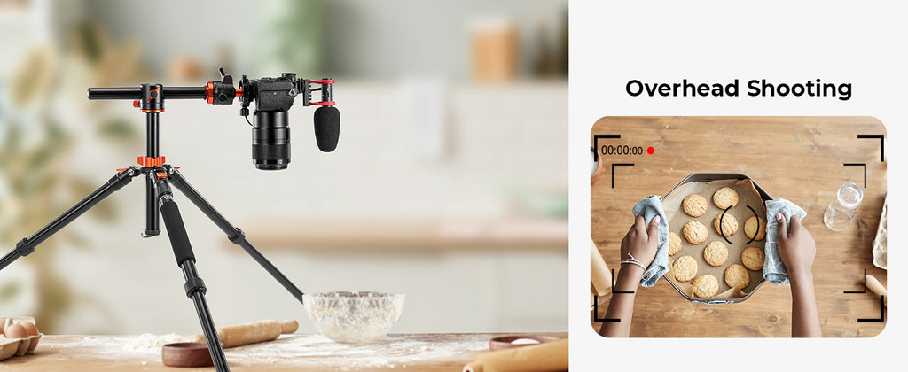 5 sections leg can adjust the height from 22'' to 67''; the N. weight with ball head is only 3.93lbs; can be 180°reflexed, which is super portable with tripod carrying bag.