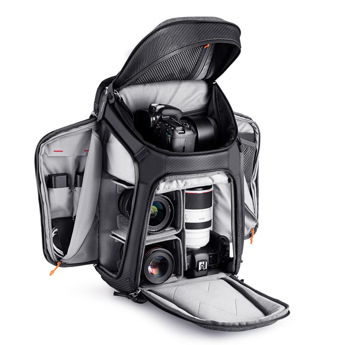 - * ��K&F Concept Alpha Backpack 25L Large-Capacity��Dimension: 17.3" * 11.6" * 9.4" . The camera bag holds 2 Cameras + 4 Lenses + 15.6" laptop ��Independent�� +12.9" tablet ��Independent��+ Tripod,and other essentials. Suspended top layer can hold the travel necessity like clothes, towels, or other personal stuff.