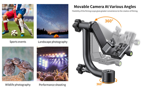 • * ��Panoramic shooting��The rotating base and vertical arm of the gimbal head can rotate 360 degrees to meet the needs of photography from different angles.