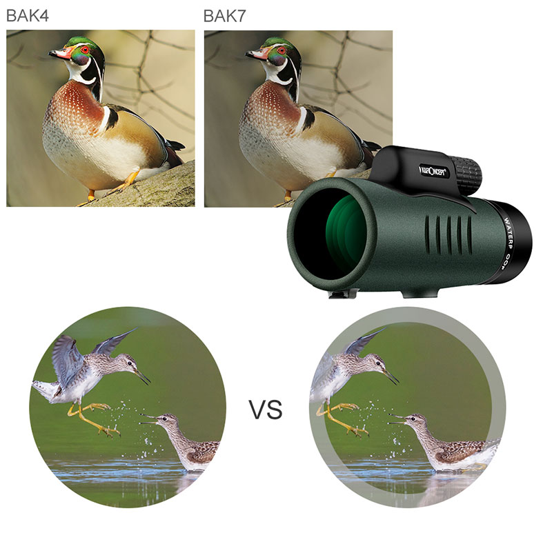 - BaK-4 prisms and multi-coated optics green film offer crisp clear images with improved light transmission.