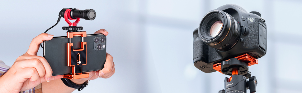 This is a rather well thought out quick release plate (Arca Swiss compatible). In addition to using it as a traditional camera or lens quick release plate, it also articulates so that a smart phone can be mounted to your tripod.