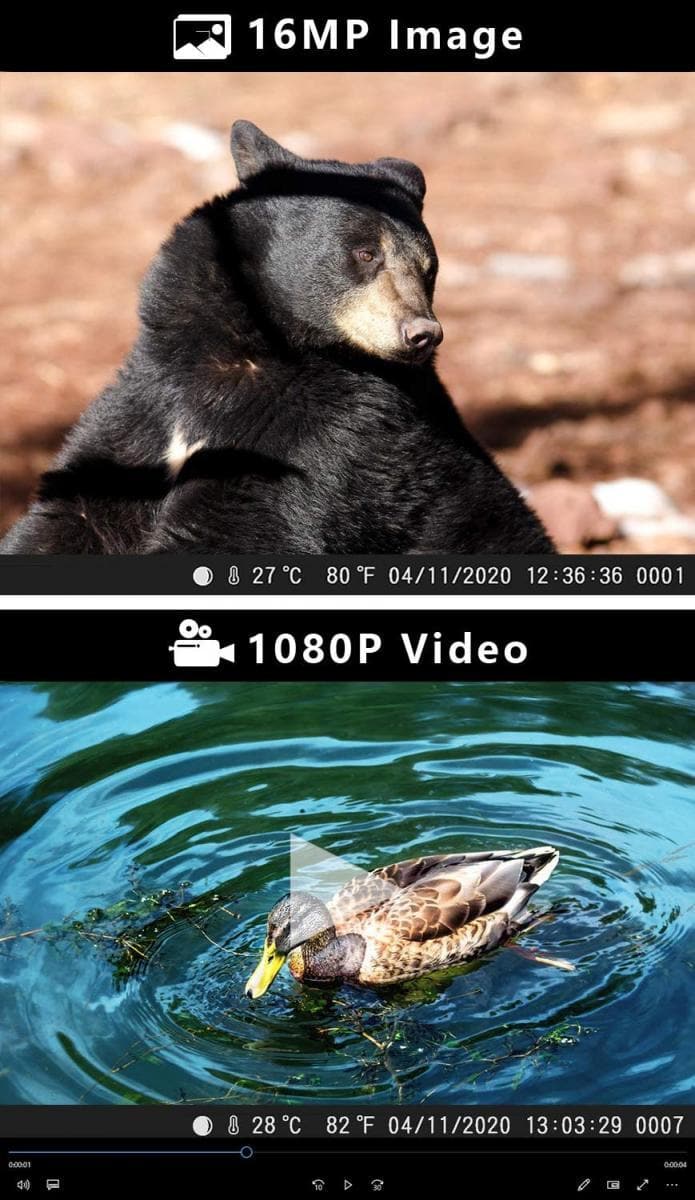 - ��1080P HD Video Resolution and High-Quality Image��: The trail camera captures 5MP clear images and 1080P HD video, providing you a vivid world of wildlife during the day(color) and night(black and white).
