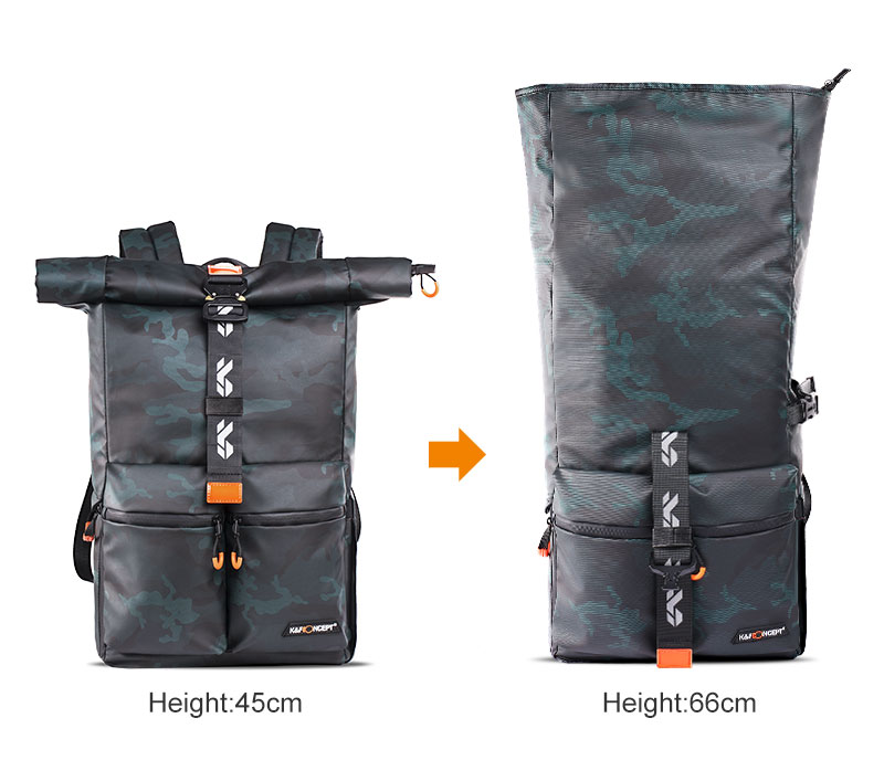 • ��Expandable Capacity��The easy-access roll-down top of the camera backpack means which gives an extra 10% of space as well as external accessory pockets for personal things and external tripod bag.
