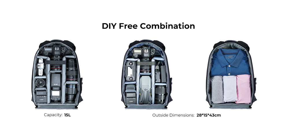 ��Capacity Upgrade��10.63'' *5.91'' *16.93�� (Bag's capacity is about 20.4L); Holds 2 Cameras + Multiple Lenses + Laptop + Camera Tripod + Accessories; Dedicated pockets for carrying laptop up to 15.6''.