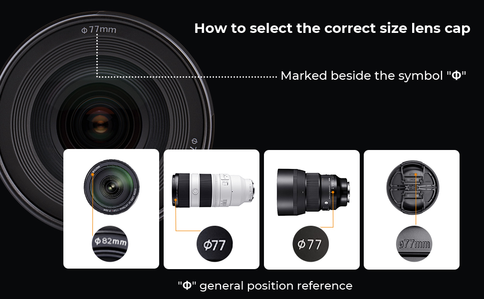 - This lens cap is made of high-quality ABS, lightweight and durable, and can be used with filters and hoods. The middle press structure design fits all kinds of lenses and protects the lenses from dust, dirt and scratches.